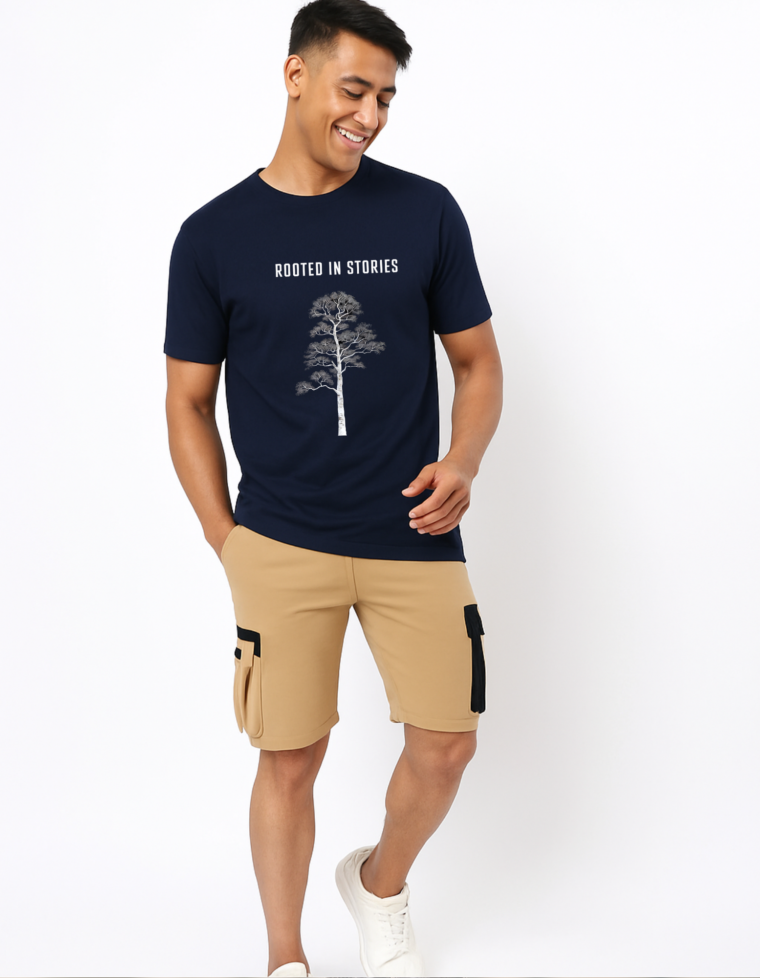 This design carries meaning in every detail. The phrase “Rooted in Stories” sits above a hand-drawn tree, its trunk strong, its branches flowing outward with ease. The roots stand for grounding and strength, while the branches reflect growth, resilience, and the journeys that lie ahead.